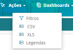 CSV: Ao clicar nesta opção, será exportado um aquivo com formato csv contendo as informações referentes a lista que está sendo exibida na tela.