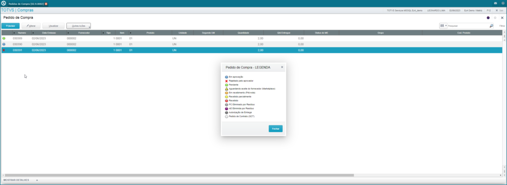 Para saber detalhes dos pedidos, basta clicar em cima da linha.